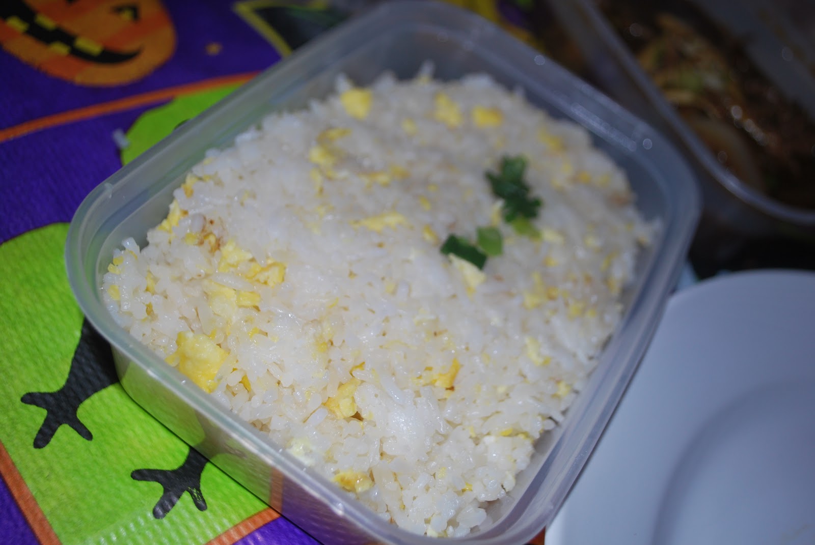Beef with fresh ginger, garlic, onion & a dash of tamarind juice. I still enjoyed this even though the ginger flavor was a bit strong. Egg. Fried. Rice.